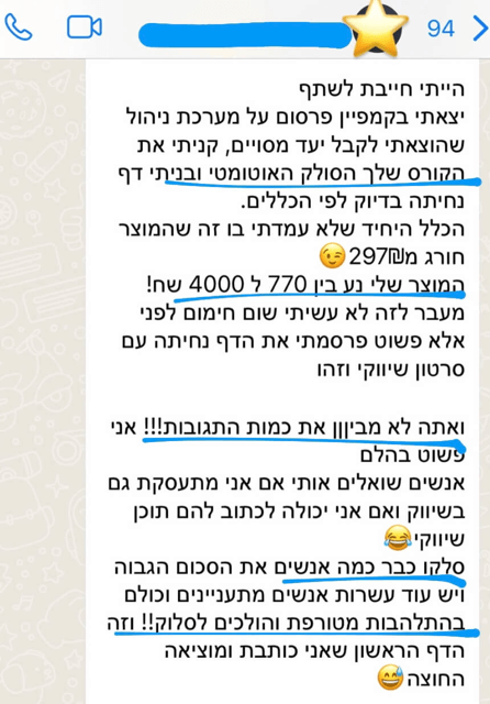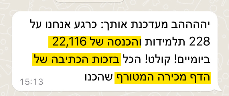 פשוט תרים דף מכירה לפי הפורמלה שלי ותחזיר את ההשקעה במכירות הראשונות…