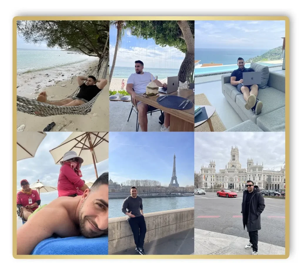 אתה יושב לשתות קפה על המרפסת עם הנוף האהוב עליך בלי למהר לשום מקום. הלו"ז היומי כולל כמה שיחות זום קצרות עם לקוחות שמתחננים לעבוד איתך ומוכנים לשלם על זה הרבה.