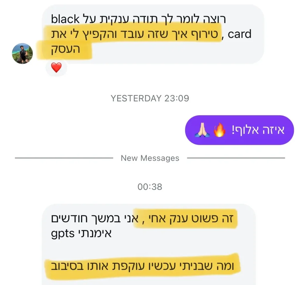 אחת הנקודות החזקות של בלאק קארד AI היא היכולת להתאים את עצמו לכל נישה. בין אם אתה מוכר קורסי יוגה, מעצב גינות, יועץ משכנתאות או בעל חנות לגאדג'טים – המערכת יודעת להתאים את עצמה בדיוק לשפה, לטון ולצרכים של הקהל שלך. בניתי את המערכת אחרי שבדקתי על עשרות נישות שונות, וגיליתי שהעקרונות הפסיכולוגיים שגורמים לאנשים לפתוח מייל ולסלוק עובדים בכל תחום.